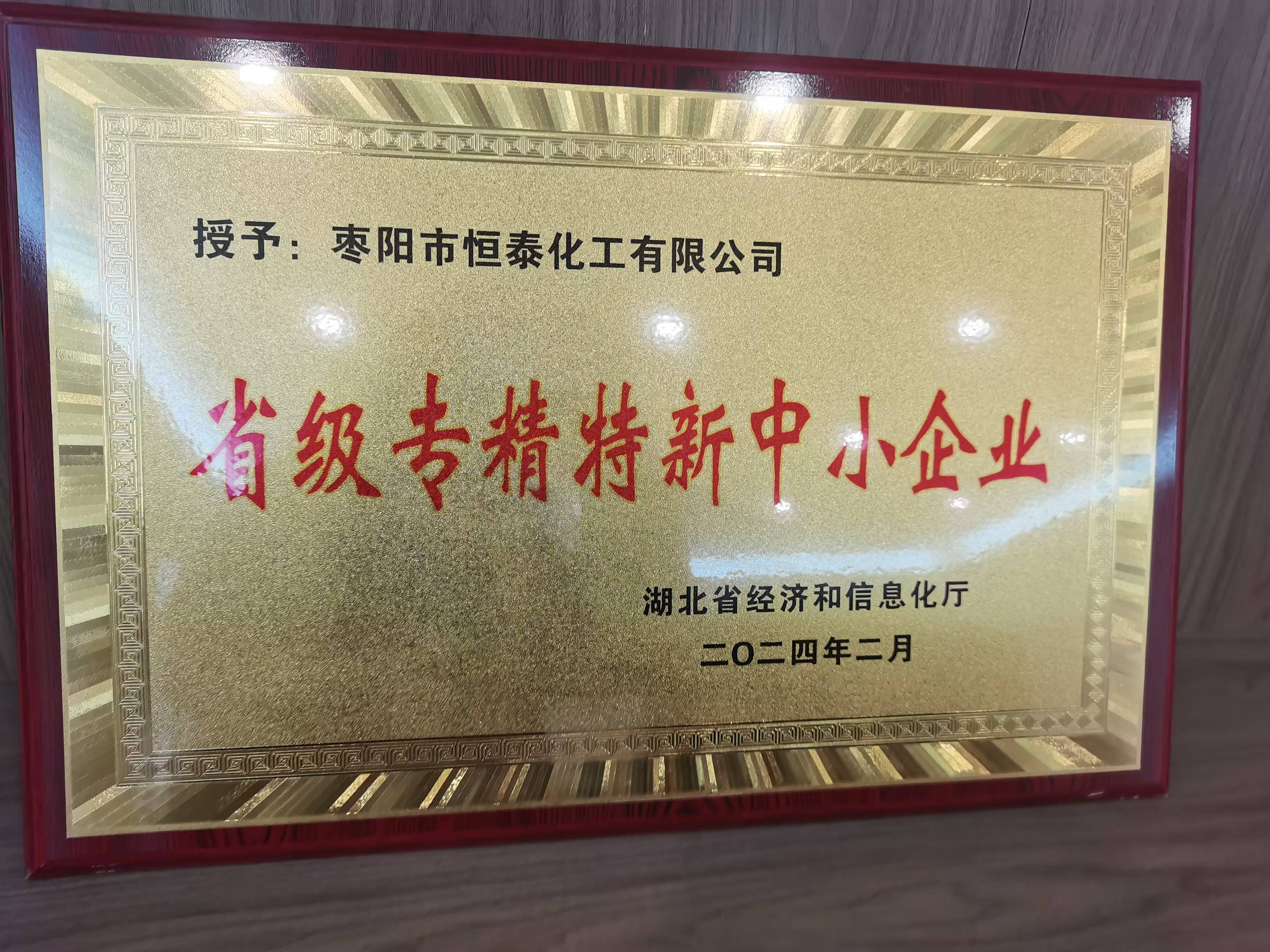 省级专精特新中小企业证书